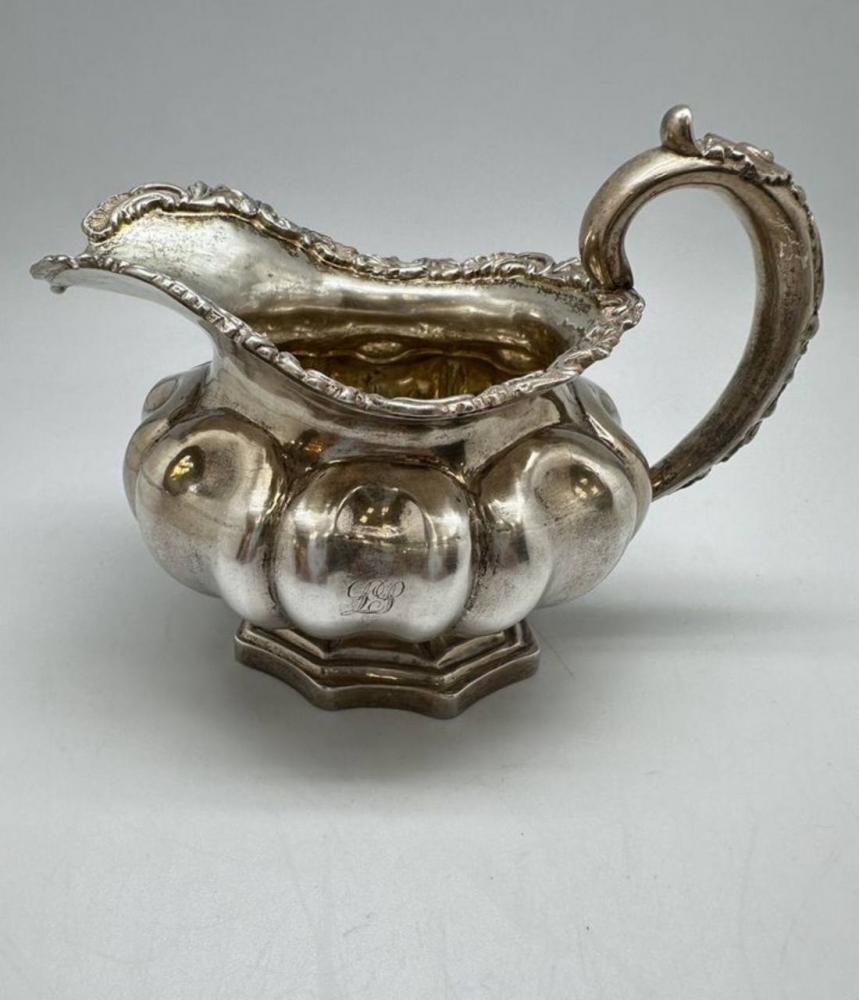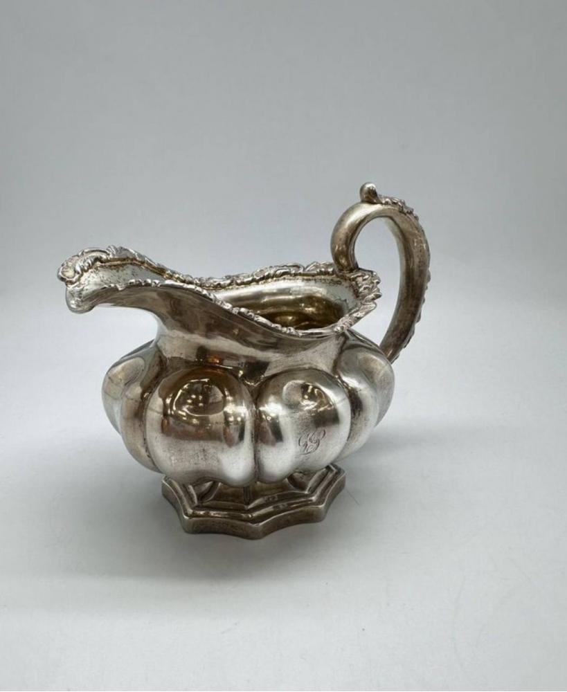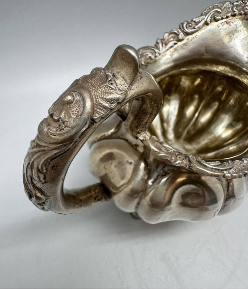 Серебряный молочник 84 пробы, Санкт-Петербург, 1841 год, мастер Адольф Шпер (серебряного дела мастер, учился с 1816 г. в Петербурге , в 1821 г. стал подмастерьем, в 1829 г. - мастером серебряного дела , имел мастерскую и много учеников (чеканные, сахарница, рукомойник и лохань, ГИМ; чайник и молочник, ГОП).